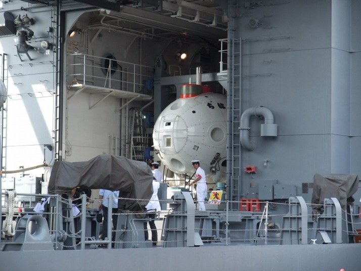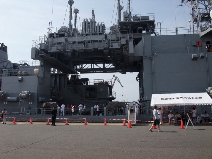 海上自衛隊・潜水艦救難艦「ちはや」一般公開。 2008/9/14(見学日) 堺市泉北港大浜埠頭。 今回、見学する艦船は、遭難潜水艦からの乗員の救出を主任務とする潜水艦救難艦で 平成12年3月に就役した。 本艦には、潜水艦救難艦特有の深海救難艇及び深海潜水装置のほか、無人潜水装置等、 ほかの、艦種では、あまり見られない装置が装備されている。