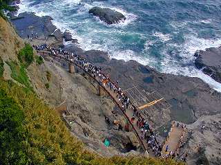 ここから、江ノ島まで、長い人の列が続く。 |