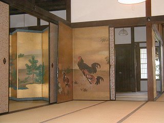 重厚な貴族文化の伝統漂う座敷や所蔵の屏風(びょうぶ)今回は室内に入ることは出来なかったが、庭から見学できた。 |