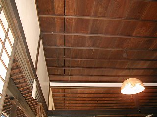 座敷の天井は大きな隙間が開いていて