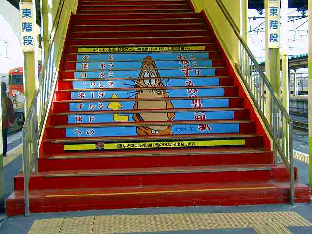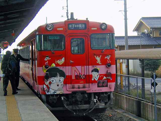 米子駅から境港駅まで48分の乗車、この時間帯は高校生登校時間か車内は騒々しく、たいへん賑やか。 |