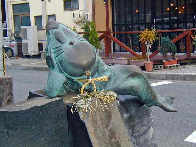 2日目朝、どんよりとした山陰特有の空模様、晴天ならホテル最上階の大浴場から大山が見渡せたのだが・・残念。 |