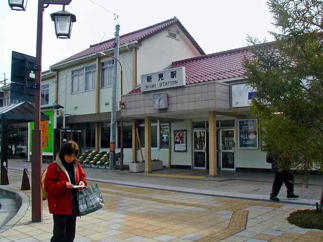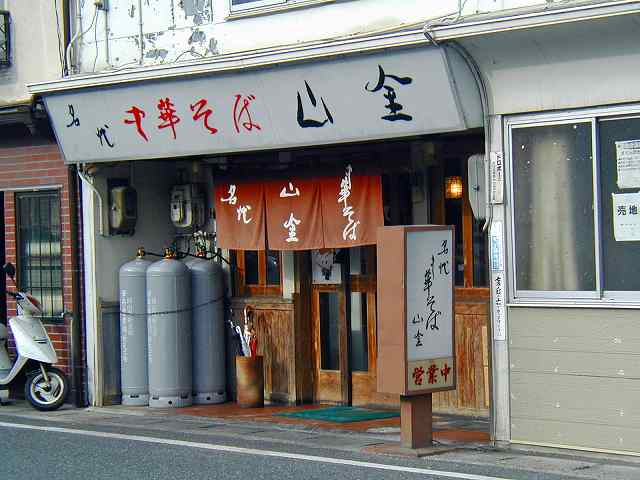| 上の5枚の写真は新見市街。 下の写真は新見駅で、途中下車して立ち寄ったラーメン店「山金」。 |
