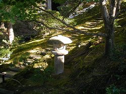 高い刈り込みの間をぬって、急な石段を上る。 |