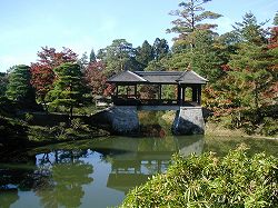 中心とした回遊式庭園。 |