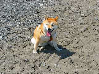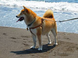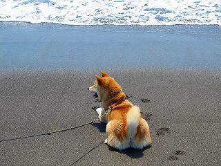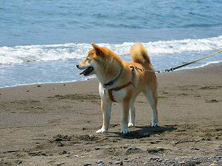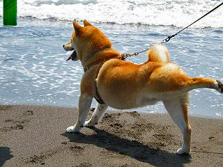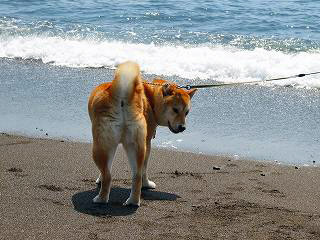 『雷蔵』生まれて初めての砂浜、打ち寄せる波に、最初は、おっかな、びっくり。